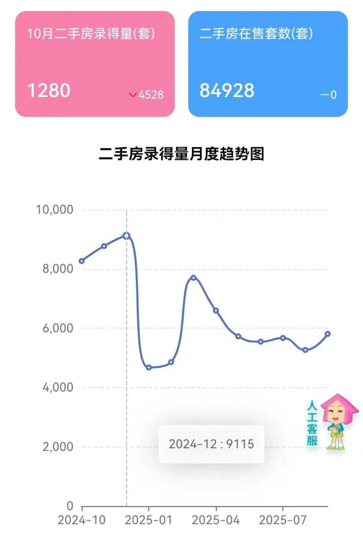 截至10月13日,深圳中介协会小程序显示,全市二手房在售量为84929套,比10天前又涨了1297套。