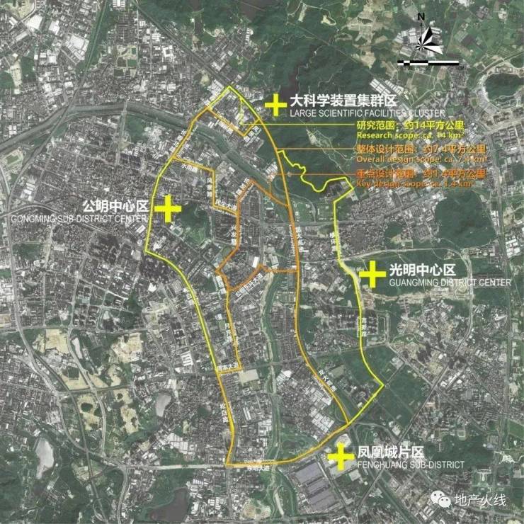 光明北部是深圳着力发展大科学装置集群主阵地之一,叠加环大科学装置产业带、茅洲河生态主脉、茅洲河‘一河两岸’高质量发展带规划要素。