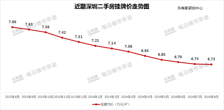 随着交易量连续半年的稳定,价格的跌幅也略有收窄。乐有家门店数据显示,8月全市二手房平均成交价格5.90万元/㎡,环比微幅下跌0.34%;业主挂牌价6.73万元/㎡,对比7月仅减少100元/㎡,亦可算环比持平。