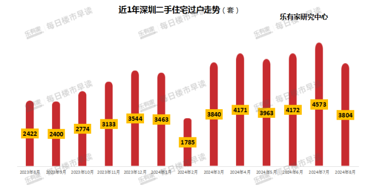 最新数据显示,8月深圳二手房的网签量持续稳定在荣枯线水平,连续6个月在5000套上下波动。二手市场网签量及过户量同比2023年8月上涨5-6成,市场活跃度仍处于较高水平。