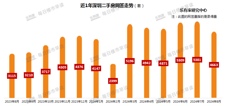 深圳市房地产中介协会小程序数据显示,2024年8月全市二手房网签(录得合同量)4663套,虽然对比7月有所下跌,但同比仍维持50%的大幅度上涨。从2024年3月开始,全市网签量连续6个月在5000套上下,围绕“荣枯线”略有波动,整体交易活跃度有明显提振。(最终网签录得数据请以深圳市房地产中介协会月报为准。)