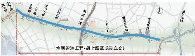 宝鹏通道于2018年在《深圳市高快速路网优化及地下快速路布局规划》中首次公开亮相。此次公布的宝鹏通道工程(简上路至龙景立交)位于通道中段。宝鹏通道工程(简上路至龙景立交)工程预计2025年7月完成施工。
