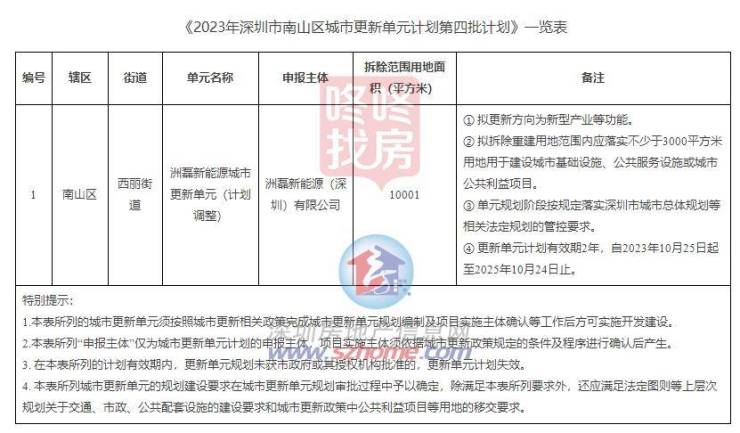 10月25日,南山发布了《2023年深圳市南山区城市更新单元计划第四批计划》一览表。
