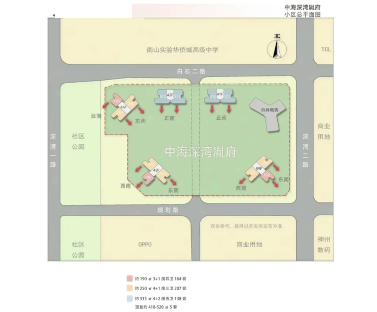 据悉,中信深圳湾预计今年4月14日开工,户型方案已经过多轮修改,仍在优化中,户型为纯大户型板楼设计,户型分为建面约200㎡、275㎡、350㎡和460㎡,项目预计2025年入市。