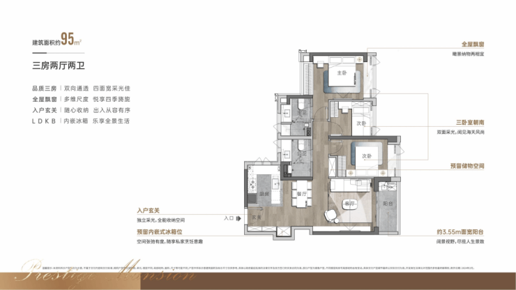 中铁阅臻府的产品,除了有建面约95㎡起步的产品外,建面约108-135㎡与越秀瑞
